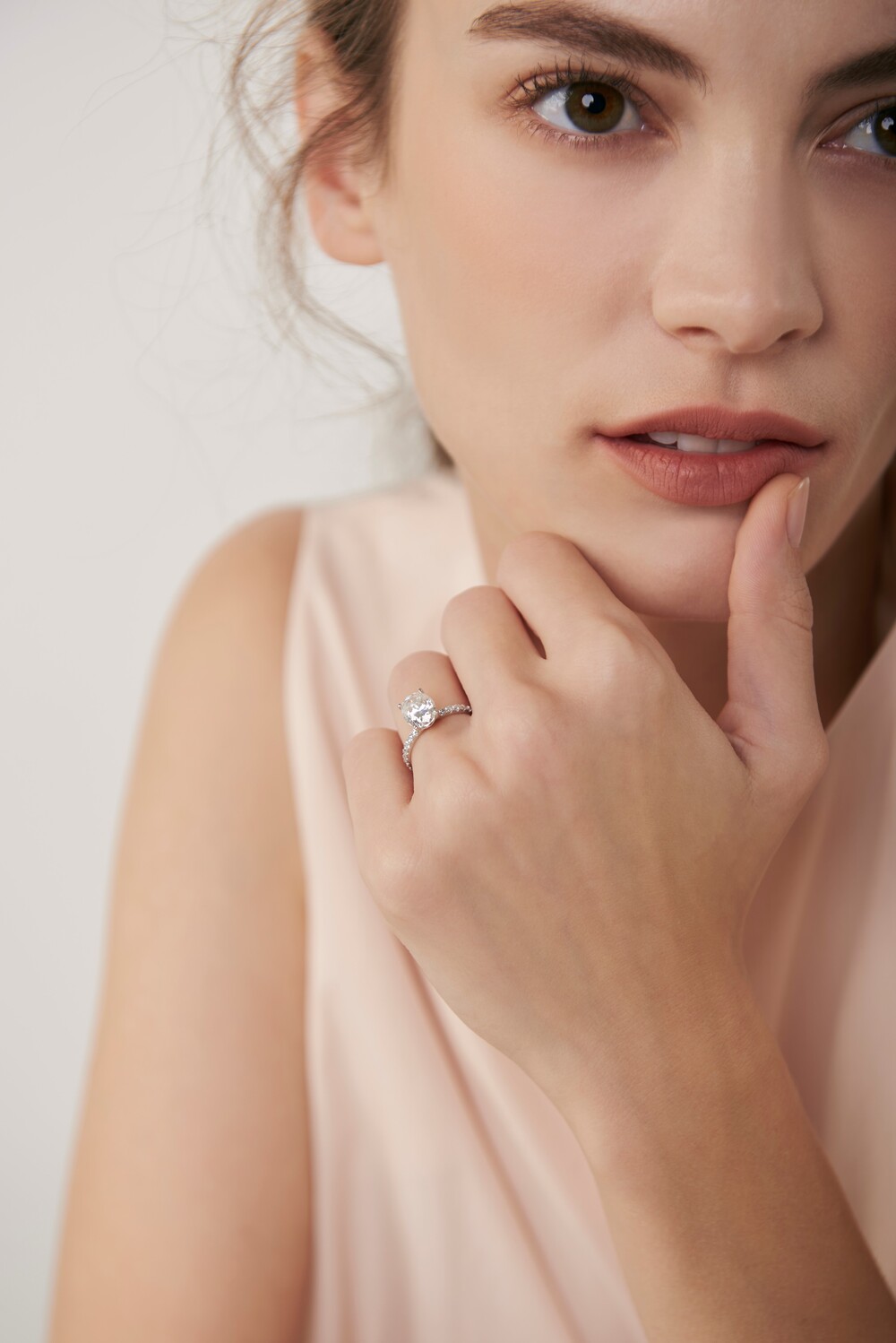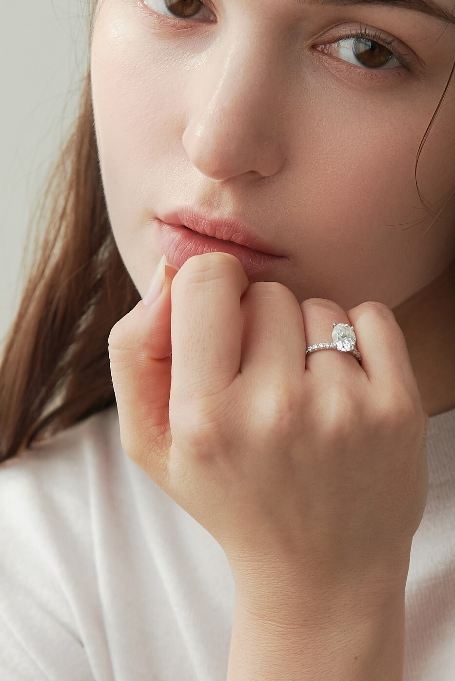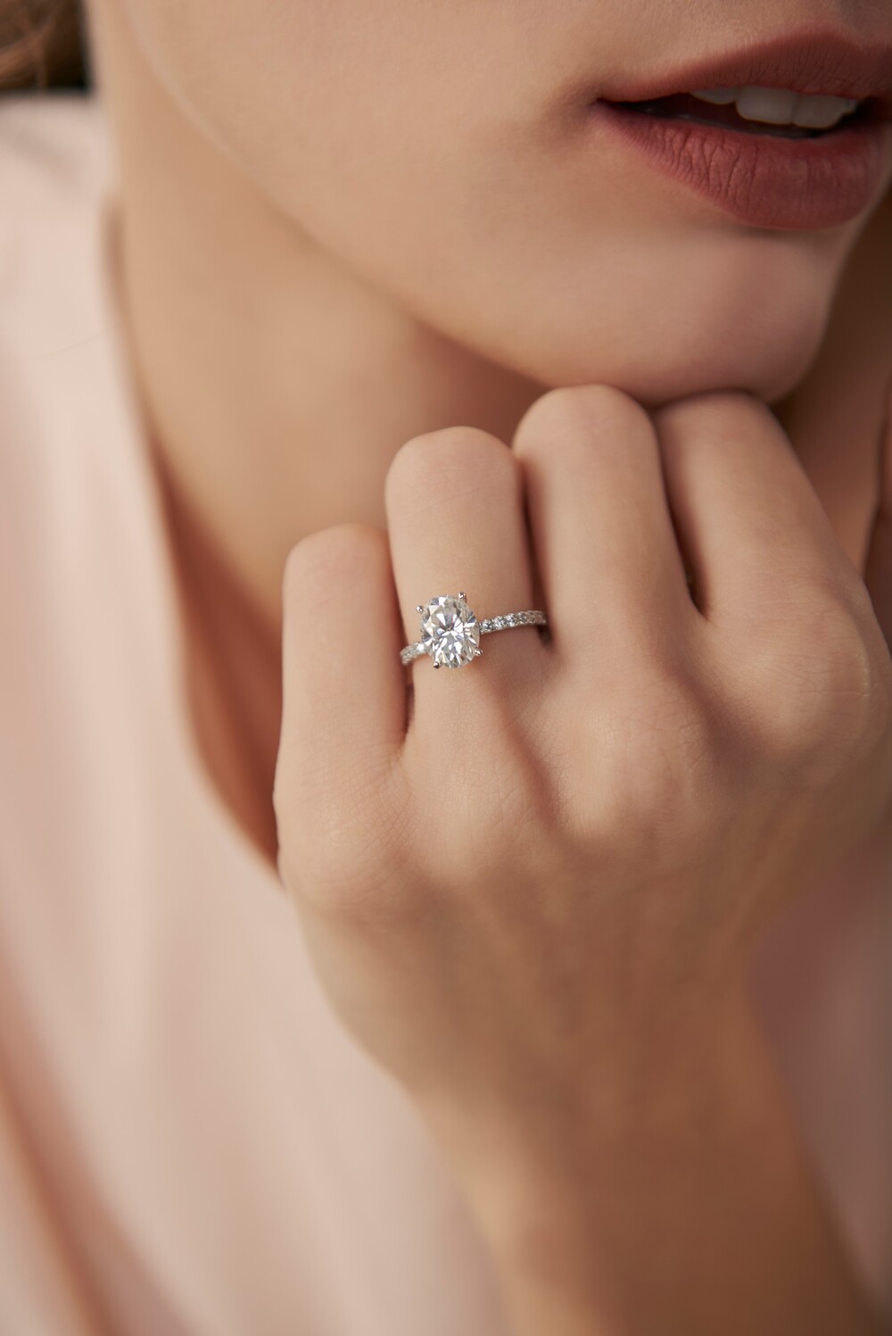 우메의 파베 셋팅은 기본적으로 군더더기 없는 미니멀한 디자인을 추구합니다. 일상에서도 부담없이 손이 갈 수 있도록 스톤의 화려함은 최대한 살리되 나머지 디자인은 간결하게 처리하여 과하지 않은 도회적인 연출이 가능합니다. 사이드에 셋팅된 모이사나이트는 언제 어디서나 깨끗한 반짝임을 선사하며 여러분의 룩을 한층 더 고급스럽게 풀어줍니다.