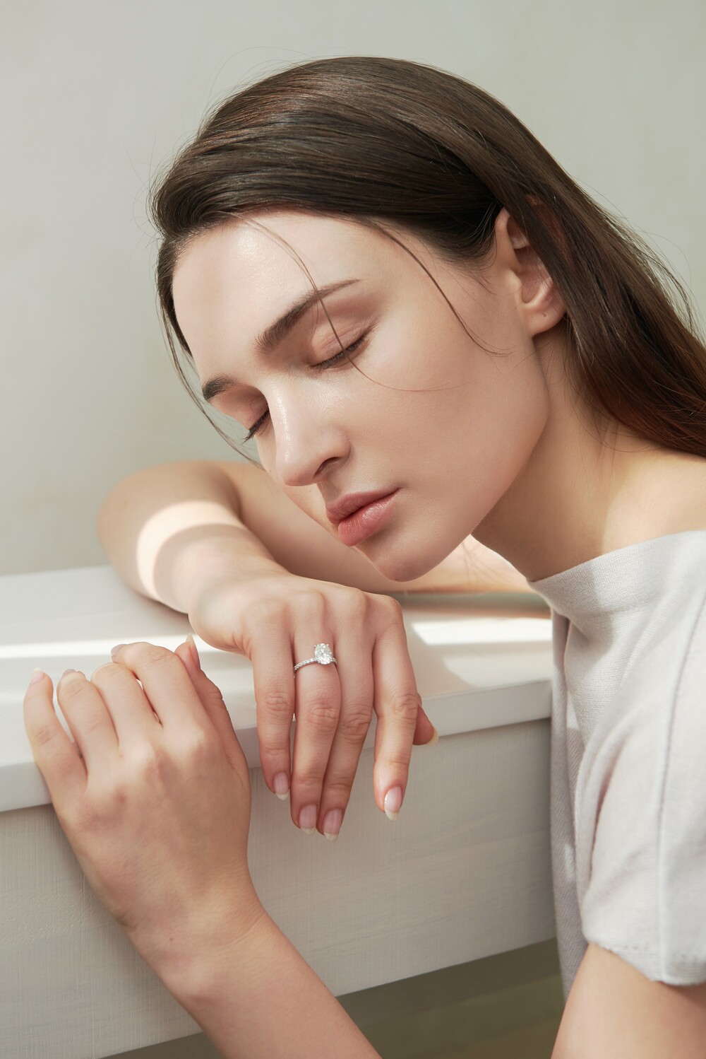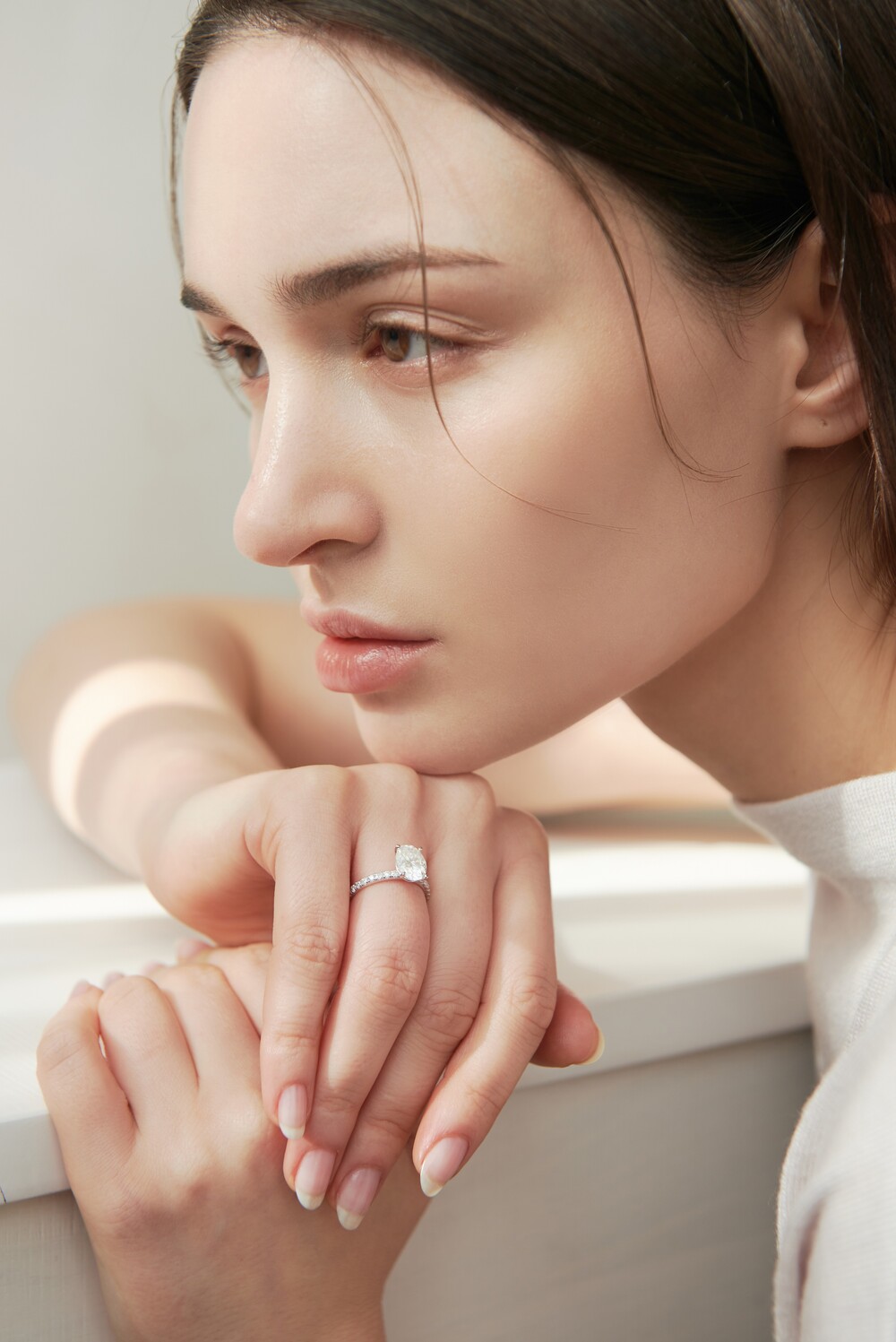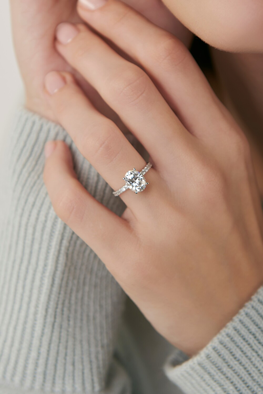 우메의 파베 셋팅은 기본적으로 군더더기 없는 미니멀한 디자인을 추구합니다. 일상에서도 부담없이 손이 갈 수 있도록 스톤의 화려함은 최대한 살리되 나머지 디자인은 간결하게 처리하여 과하지 않은 도회적인 연출이 가능합니다. 사이드에 셋팅된 모이사나이트는 언제 어디서나 깨끗한 반짝임을 선사하며 여러분의 룩을 한층 더 고급스럽게 풀어줍니다.