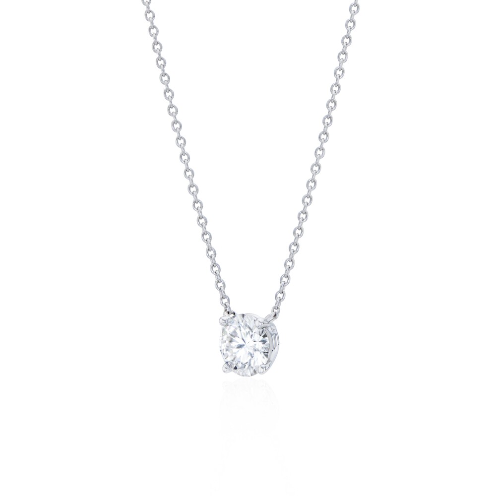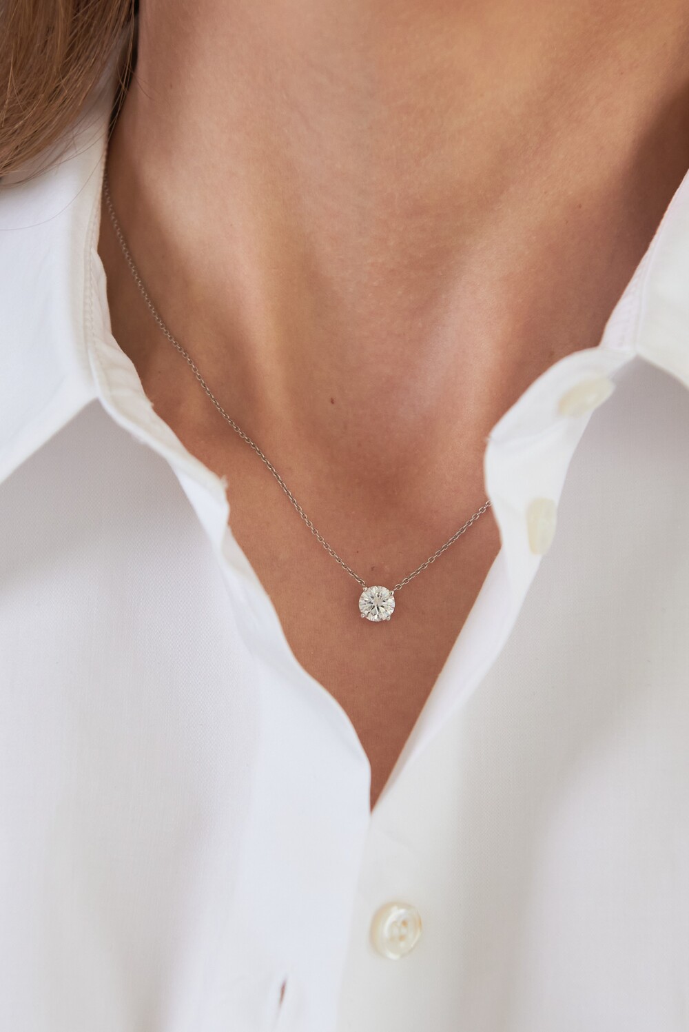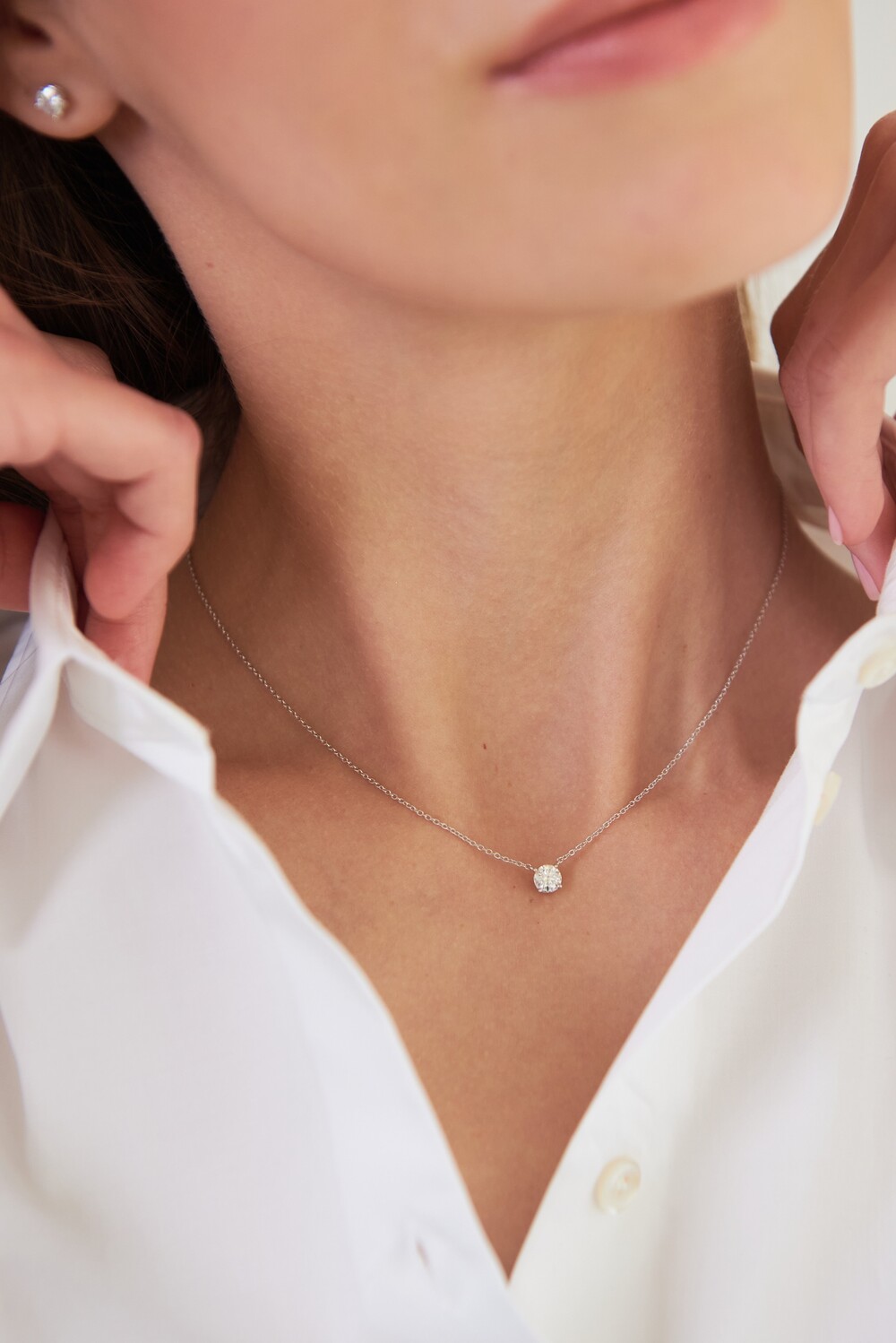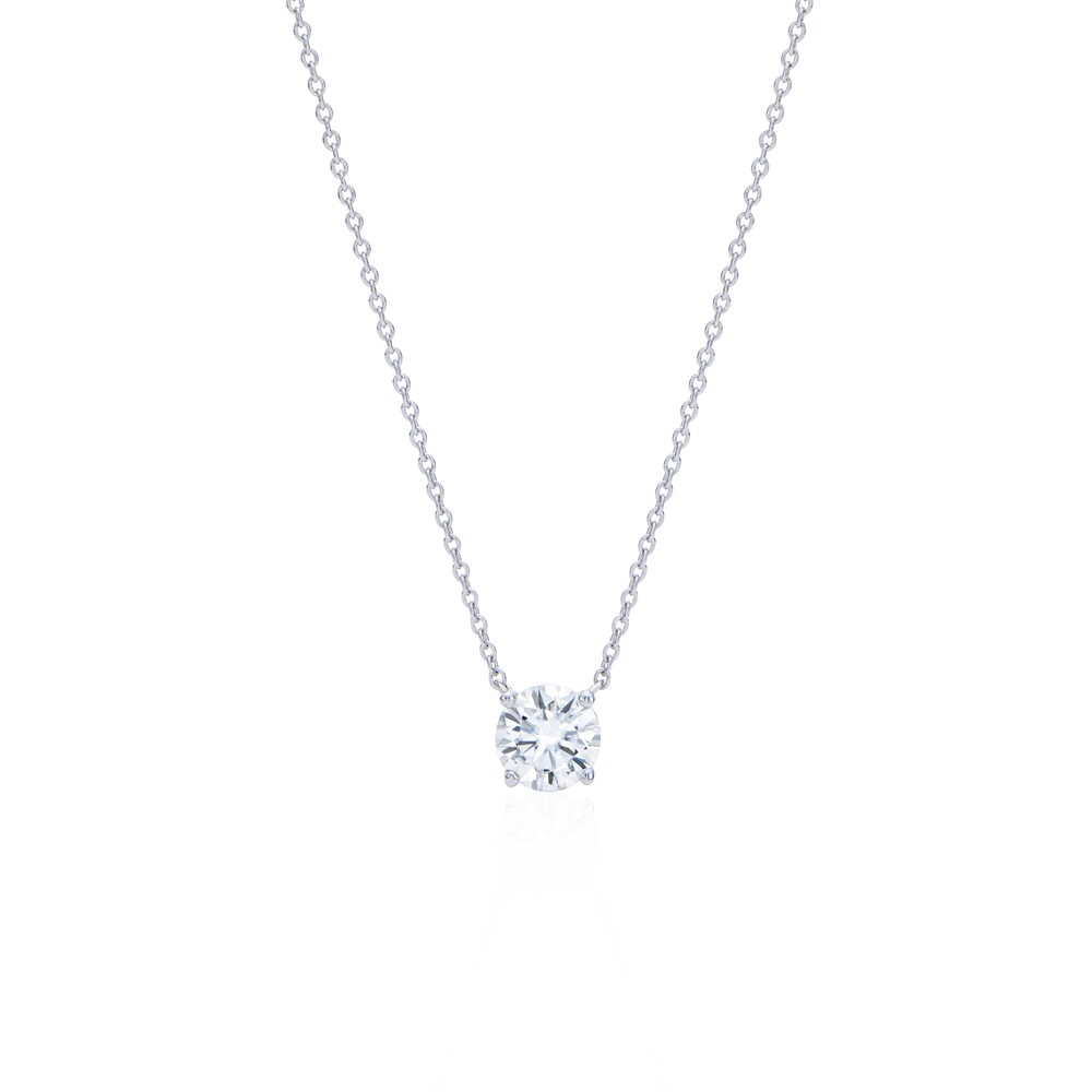 타임리스한 디자인의 라운드컷 목걸이입니다. 라운드컷 4프롱 셋팅과 3푼 줄로 스톤의 반짝임을 더욱 강조하는 가장 클래식한 디자인 그대로 재현했습니다. 체인의 존재감을 최소화하고 여리여리한 느낌을 극대화하기 위해 3푼 줄을 사용하였으며, 의도적으로 강한 힘을 가하지 않는 이상 일상생활에서도 충분히 편안한 착용이 가능합니다. 체인 자체는 반짝임이 거의 없는 차분한 느낌으로 스톤에 시선이 집중되며, 고급스러운 느낌을 줍니다. 14K 18K 골드로 제작되어 알러지 없이 오래도록 착용 가능하며, 어떤 룩에서나 포인트가 되어 활용도가 높습니다.