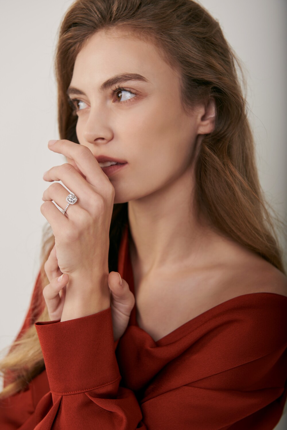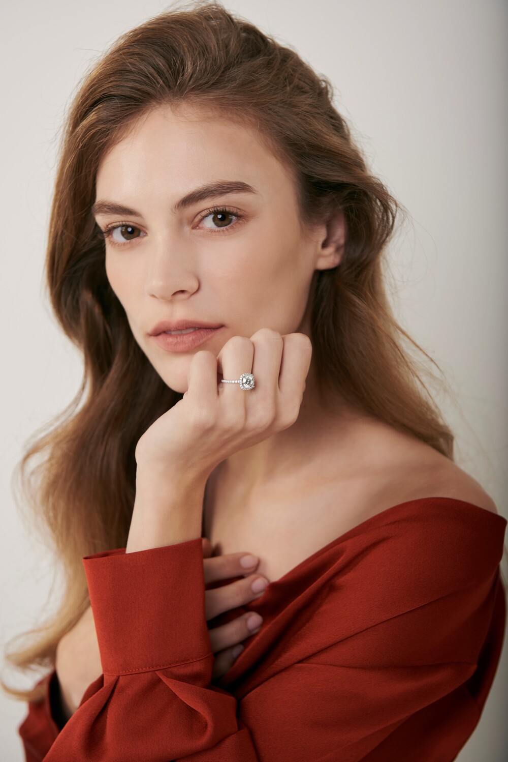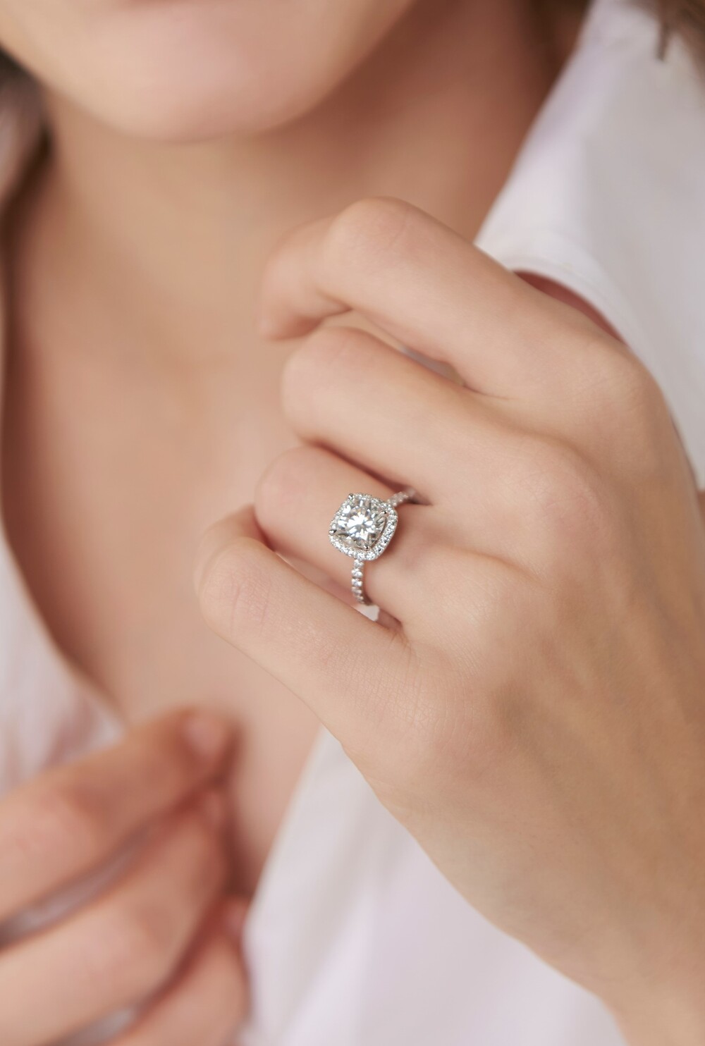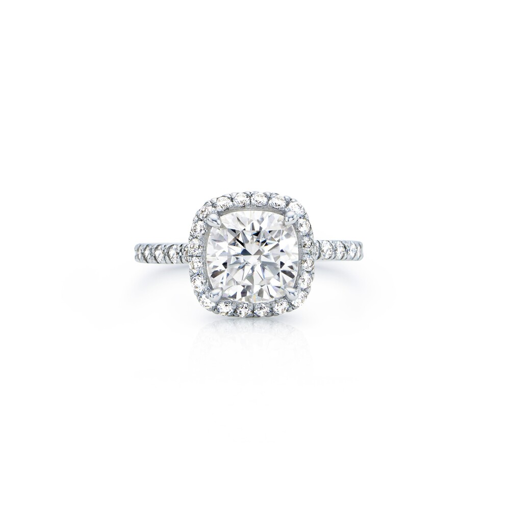 헤일로(halo) 셋팅이란 촘촘하게 셋팅된 멜리 다이아가 메인 스톤 주위를 두르고 있는 셋팅 방식으로, 보다 과감하고 화려한 디자인이 특징입니다. 메인 스톤으로는 쿠션컷 2캐럿을 선택하여 세련된 무드를 자랑하며, 소장 가치 있는 유니크함을 선사합니다. 스톤을 물리고 있는 난집에도 멜리 모이사나이트를 셋팅하였으며, 각기 다른 사이즈의 스톤을 배치하여 디테일한 부분까지 섬세하게 연출한 완성도 높은 퀄리티를 만나보실 수 있습니다.
